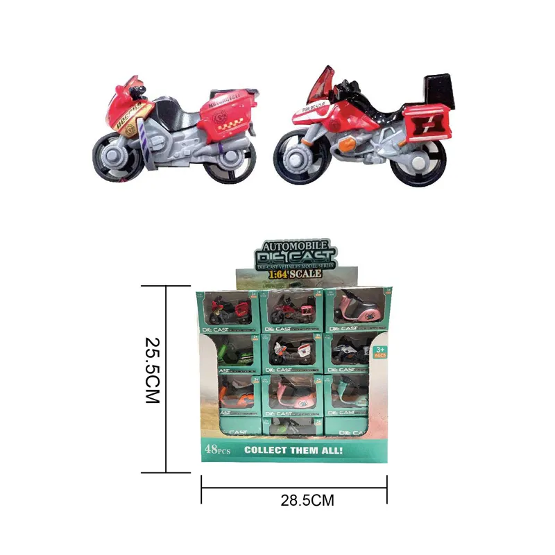 DESC: 1:64 Sliding Alloy Motorcycle, 18pcs/Box, 4 Models Mixed
